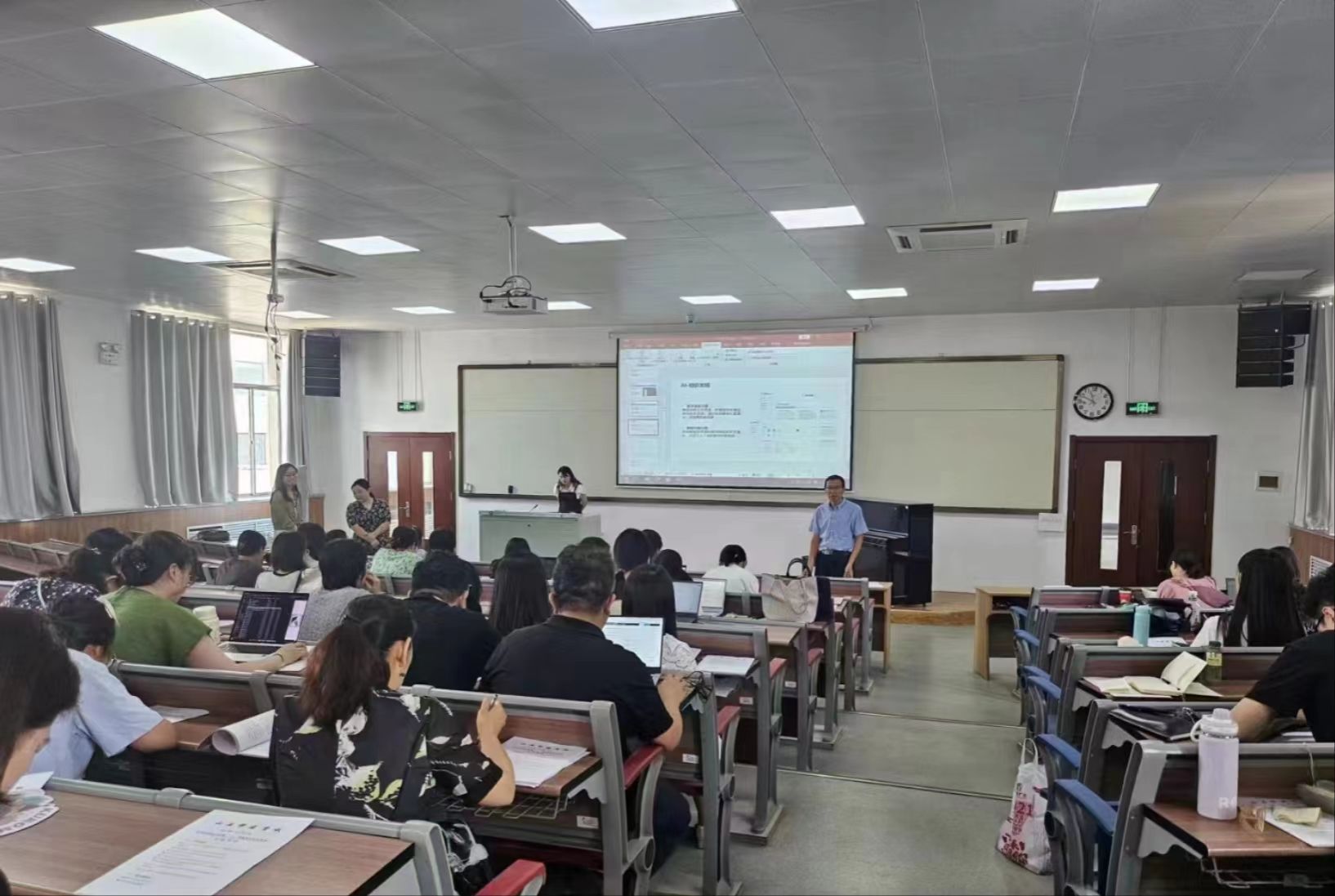 7月11日上午,我院在一教201教室举办了一场关于智慧课程建设的介绍会。本次会议响应“AI赋能教学”主题,旨在向全体老师介绍智慧课程建设的方案及具体操作流程。会议由刘青山副院长主持,智慧树工作人员出席并进行了详细的分享。