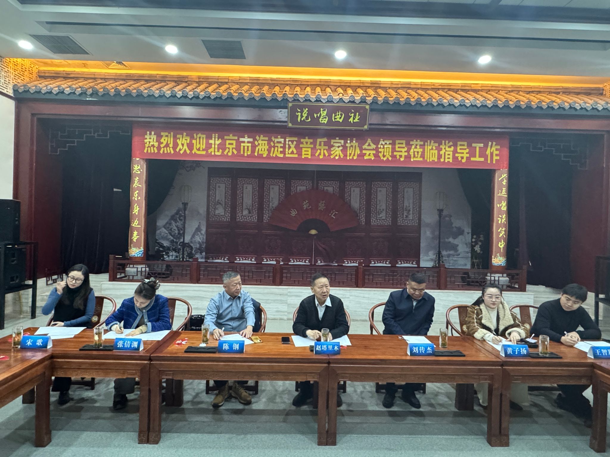 此次会晤汇聚了音乐界多方力量,海淀区音协主席、中国音协原副主席、中国音乐学院原院长赵塔里木,中国音乐学院教辅党总支书记陈钢,中关村数字艺术中心外联部主任刘传杰及中国音乐学院师生代表,东营市文学艺术界联合会党组成员、副主席刘志海,东营市音协主席谭振等共同出席。