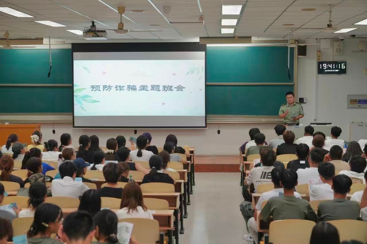 为帮助新生快速提升反诈防骗意识,守护财产安全与校园生活稳定,学院以“防范电信网络诈骗”为核心,开展了系列活动。辅导员常光凯为新生召开防诈主题班会,讲解实用防骗知识;组织全体新生集中观看防诈教育视频,强化学生风险认知;组织全体新生参加学校组织的防诈骗专题讲座,深化学生安全防护认知。
