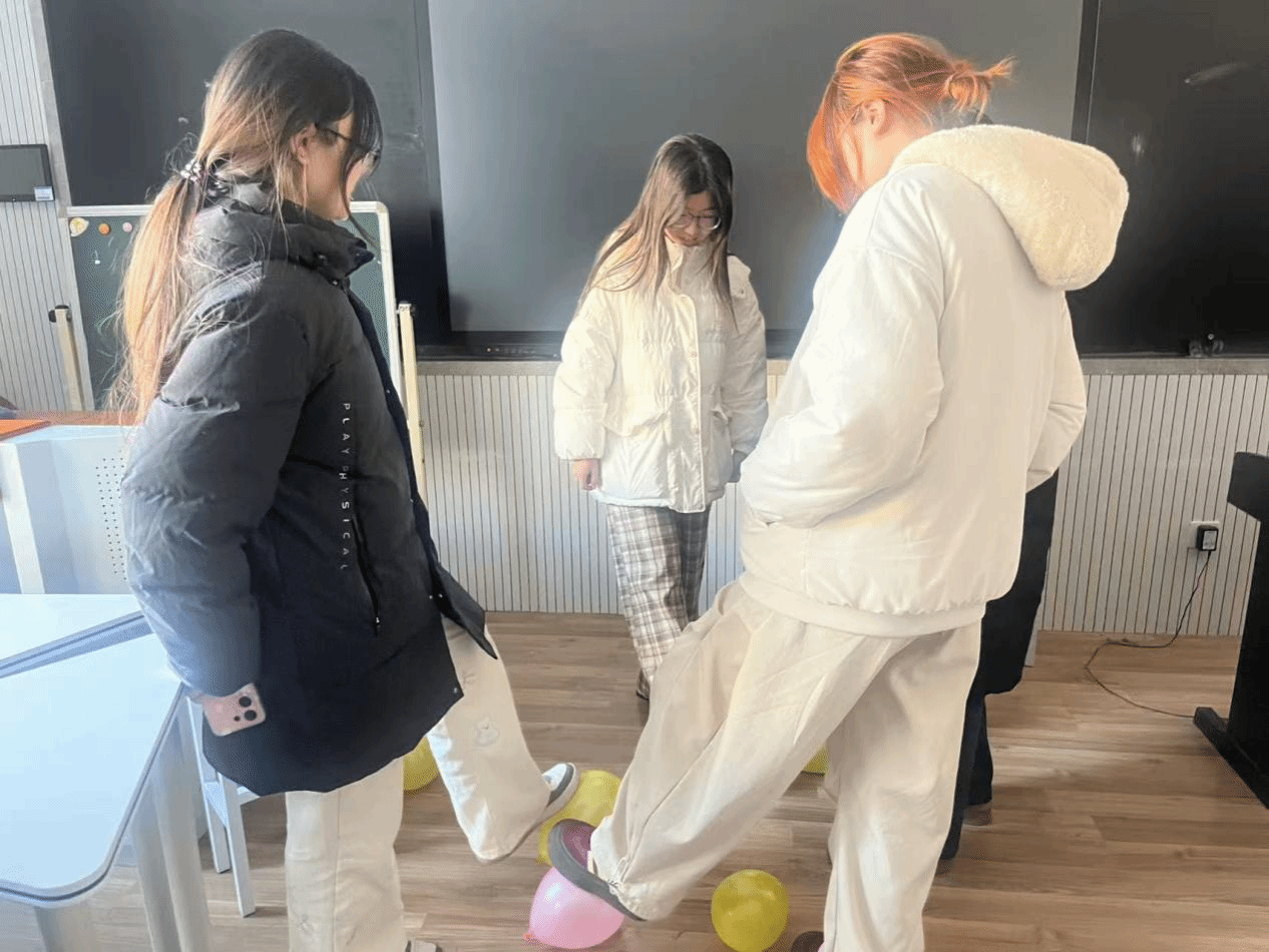 一场别开生面的“爆走烦恼,放飞心愿”活动点燃了现场热情。同学们将心愿写在彩纸上,放入气球中吹起,并在气球表面写下向焦虑、迷茫等烦恼宣战的话语。随着集体倒数,大家一同踩破气球,爆裂声响起,仿佛烦恼也随之消散。这场富有仪式感的趣味互动,帮助同学们释放压力,重拾面对生活的勇气与力量。